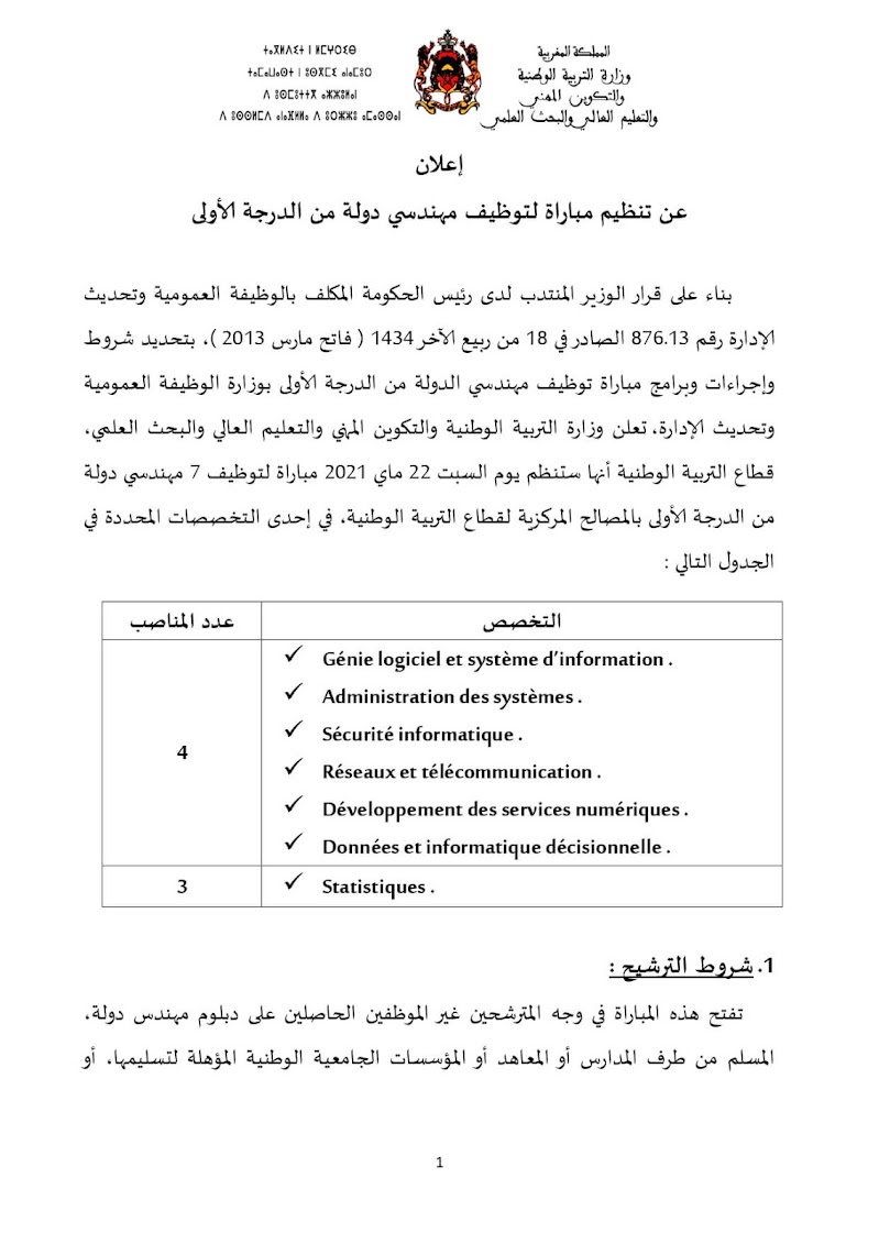 إعلان مباراة توظيف 7 مهندسي دولة من الدرجة الأولى