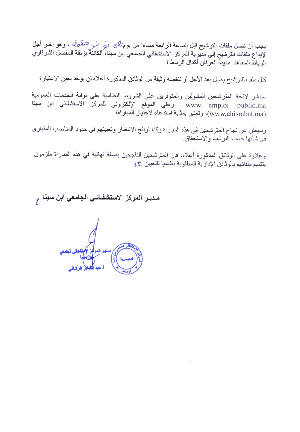 يعلن المركز الاستشفائي ابن سينا عن مباريات لتوظيف 25 منصب في الدرجات والتخصصات التالية :