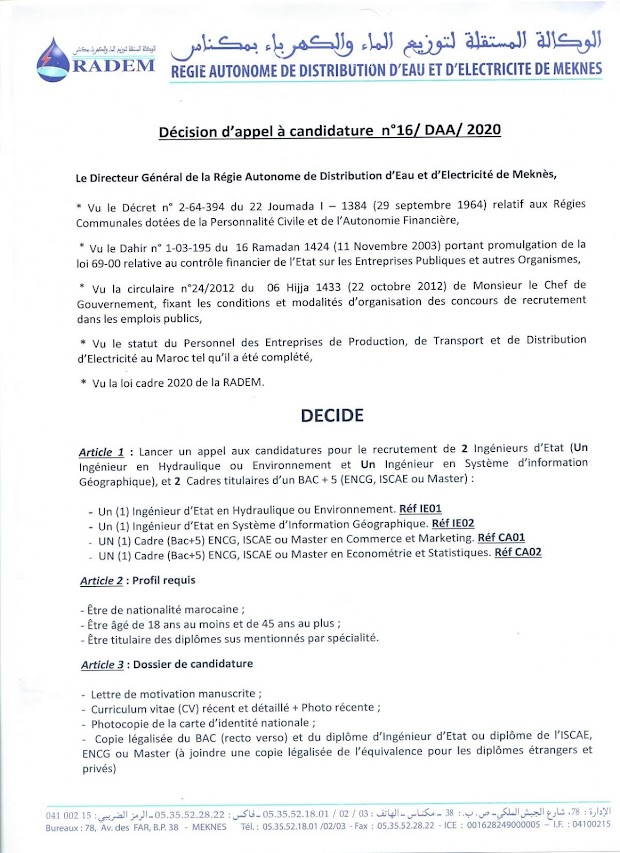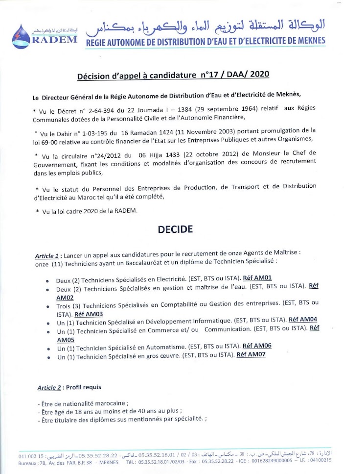 Régie Autonome de Distribution d’Eau et d’Electricité de Meknès – RADEM